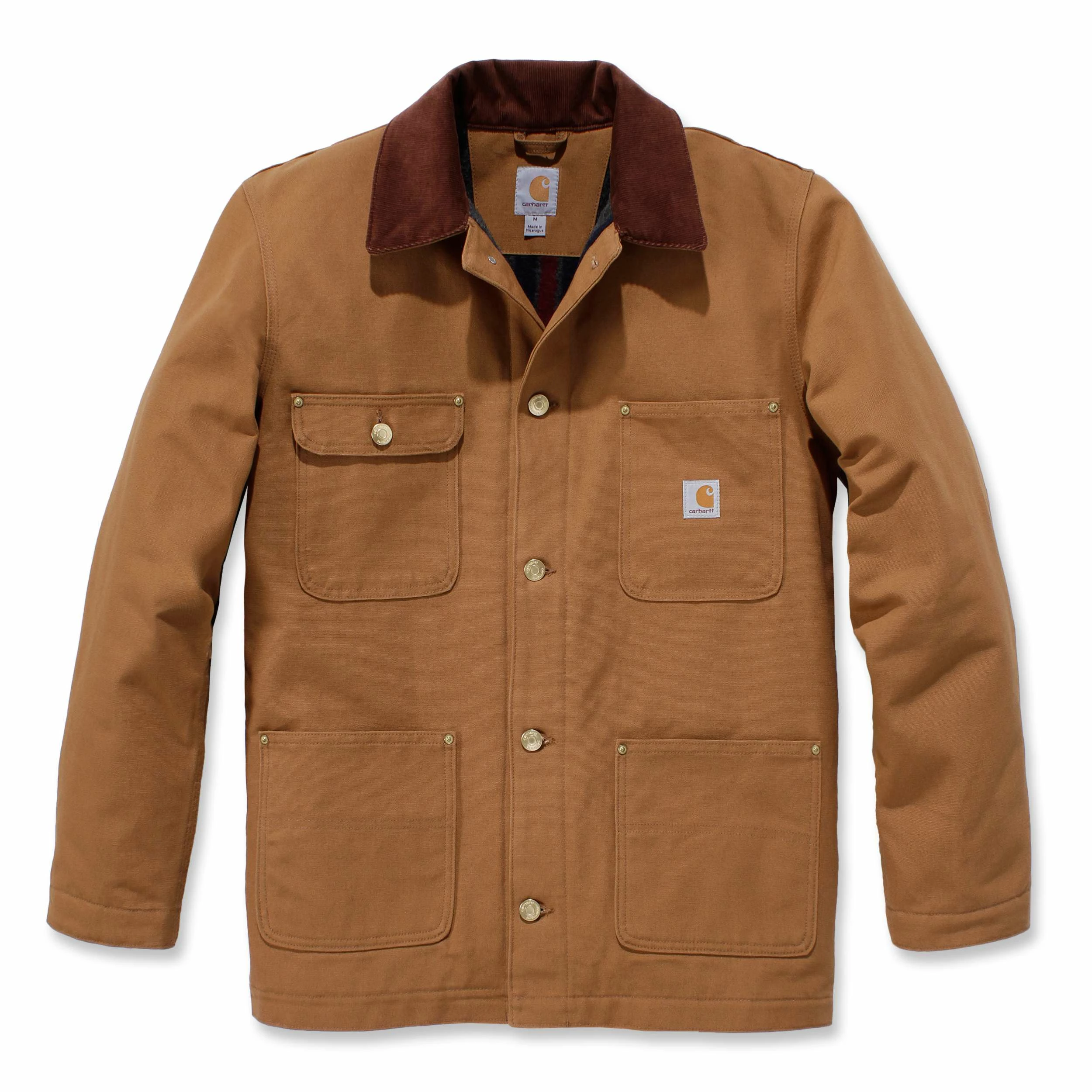 - Krage i cord, trykknapper som fester kragen