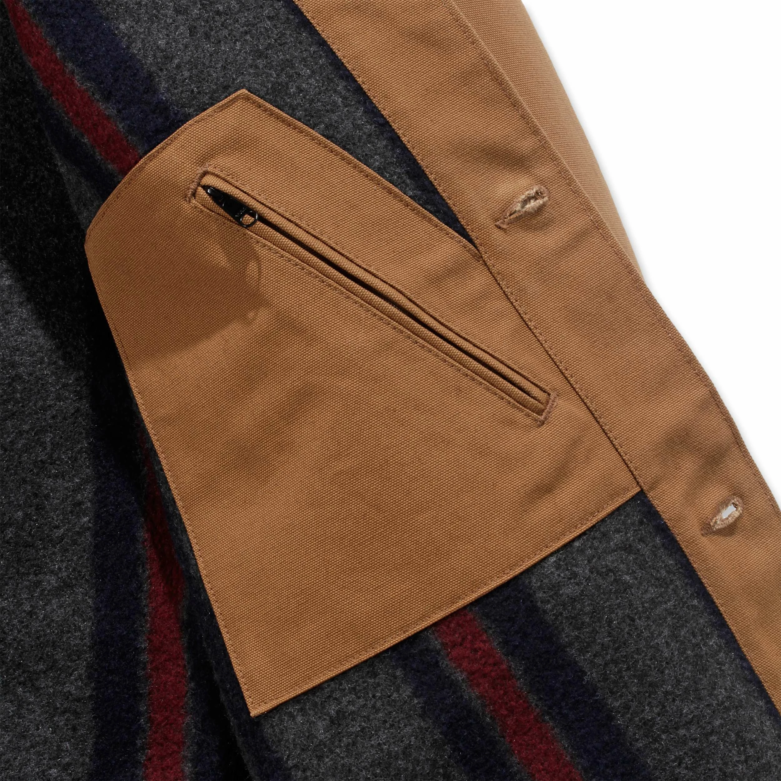- To brystlommer, forsterket feste med niter på overdelen, en med klaff og knapp