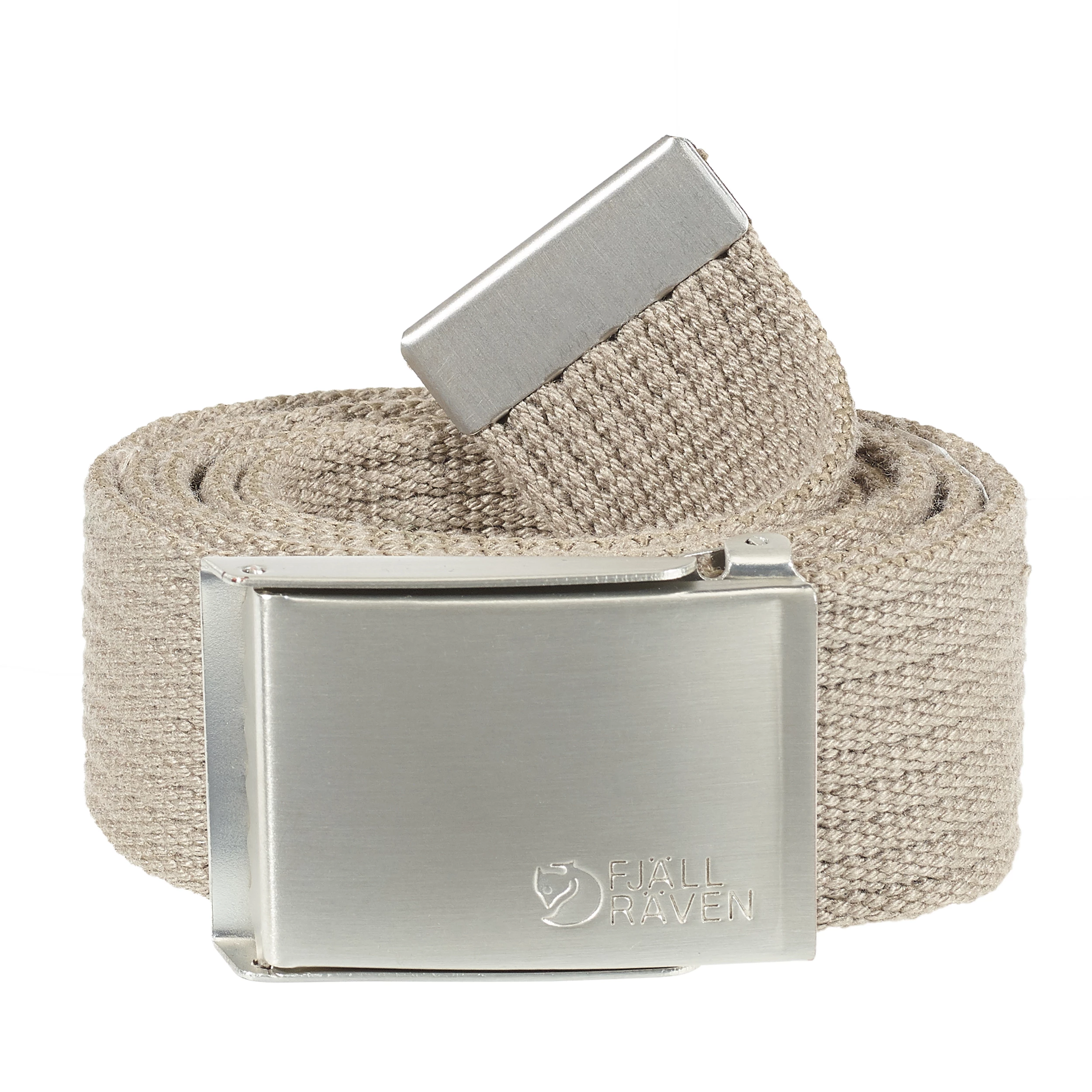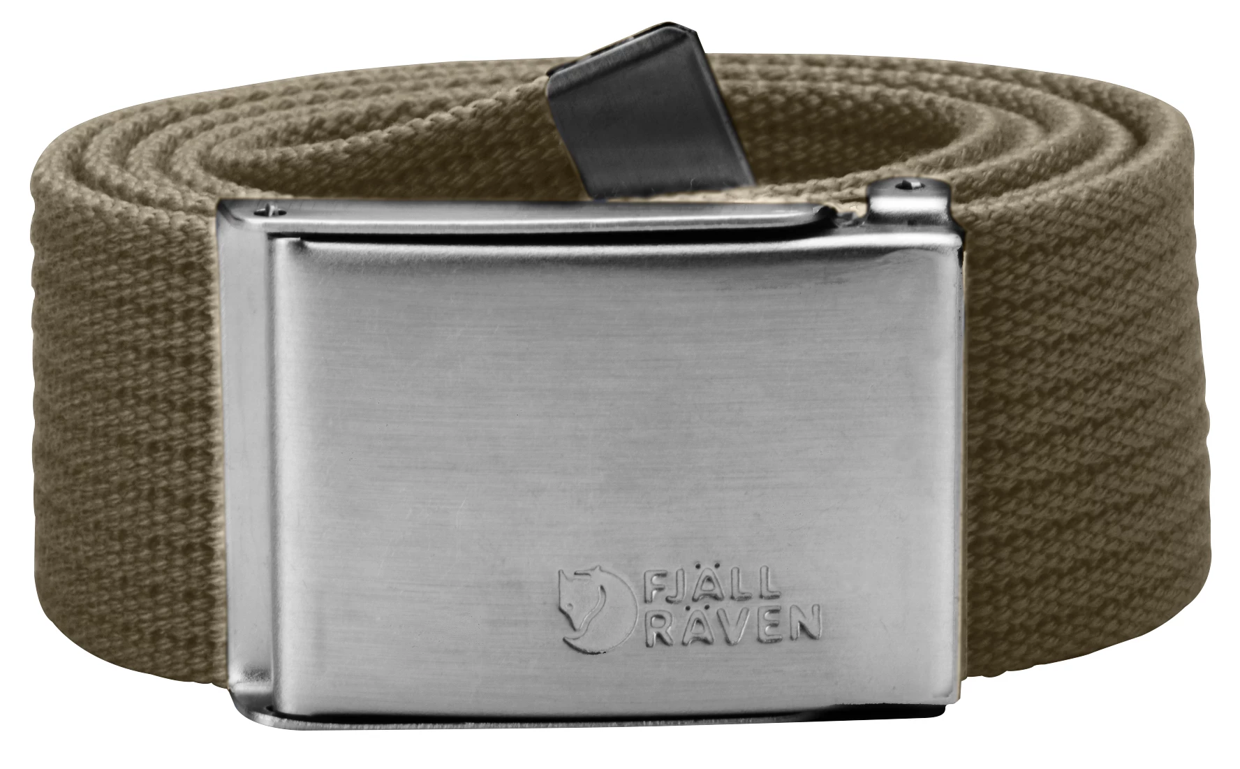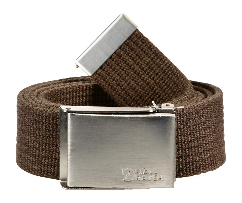 Belte i lerret. Justerbar lengde og såkalt “”militærspenne”” i metall.