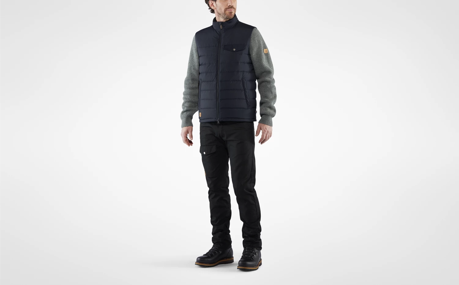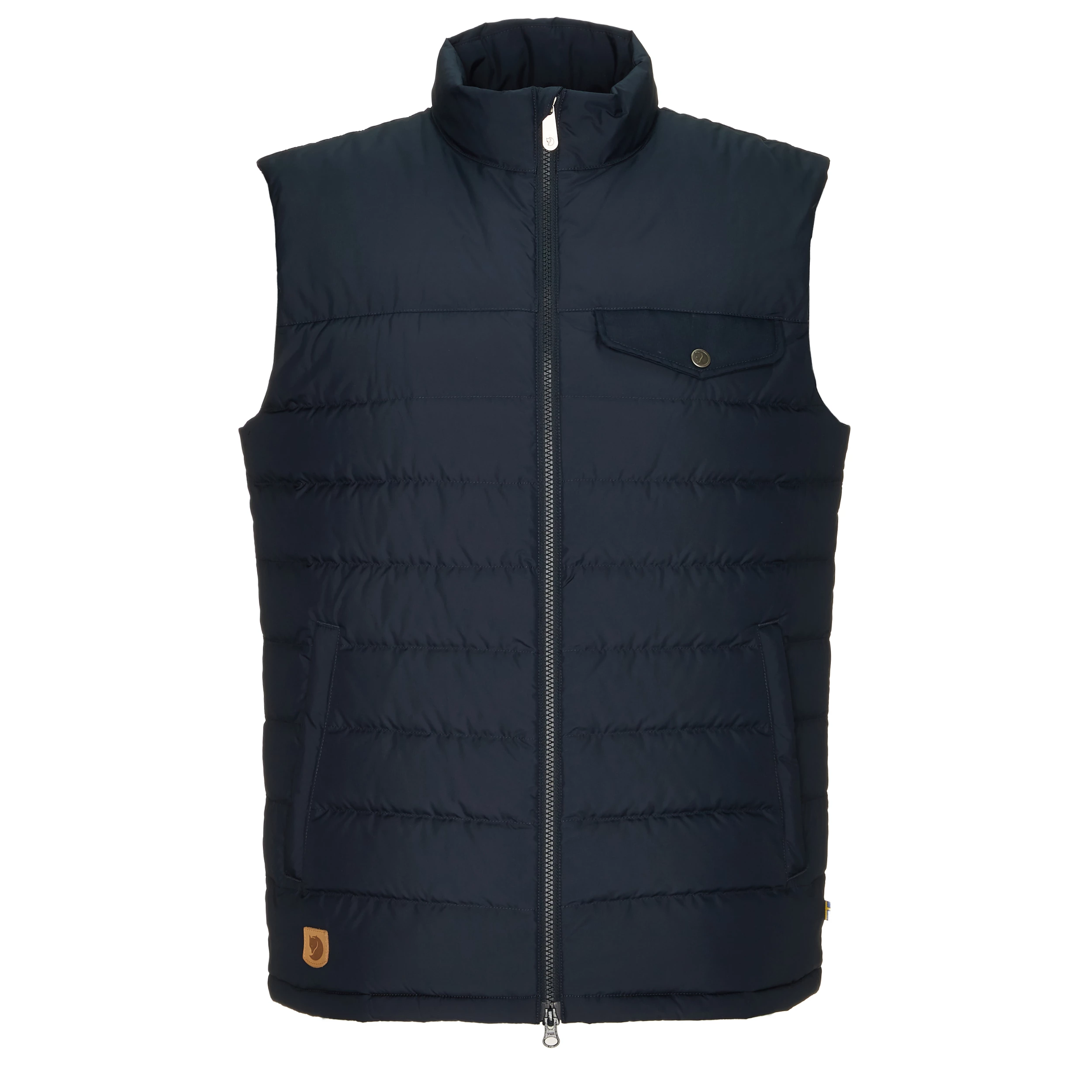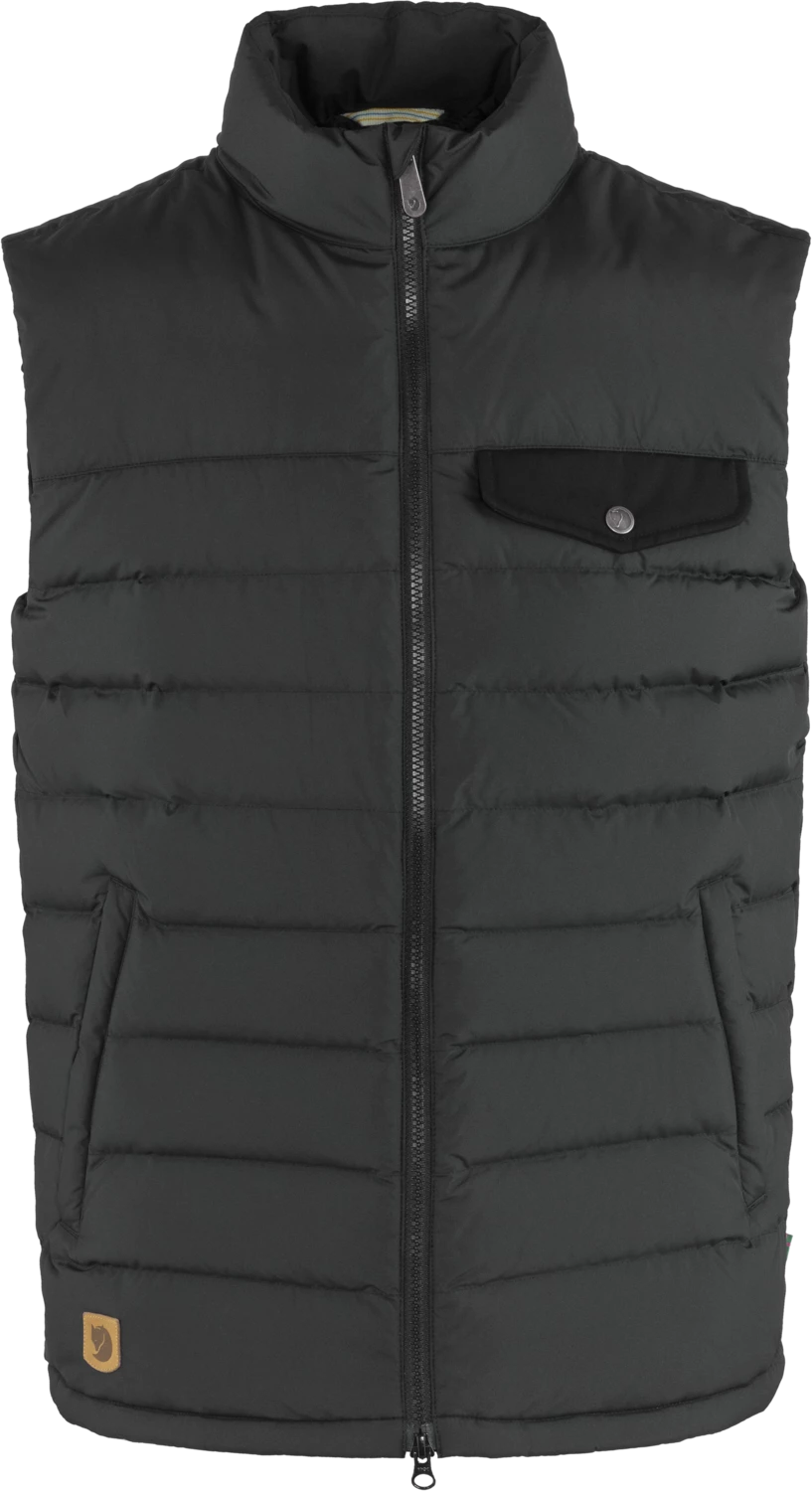 Greenland Down Liner Vest er laget av resirkulert polyester, og det lette fôret består av etisk produsert dun. Det er en utenpåliggende brystlomme med klaff i G-1000® Eco og knapp, samt to håndlommer med glidelås. Toveisglidelås foran med innvendig stormklaff gir mulighet for ventilasjon.