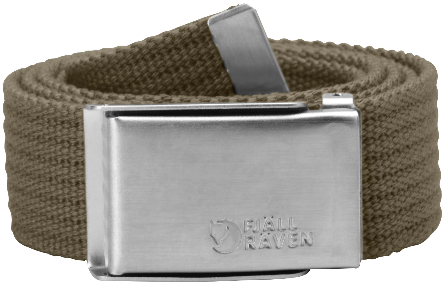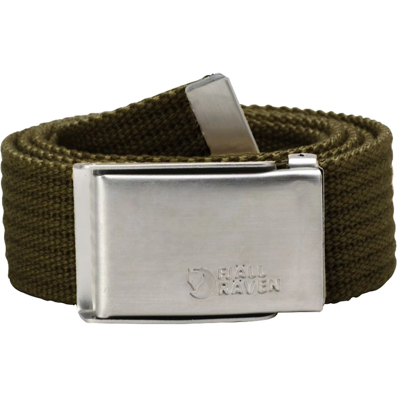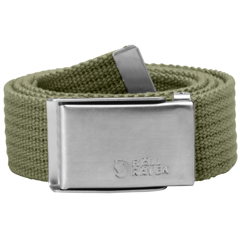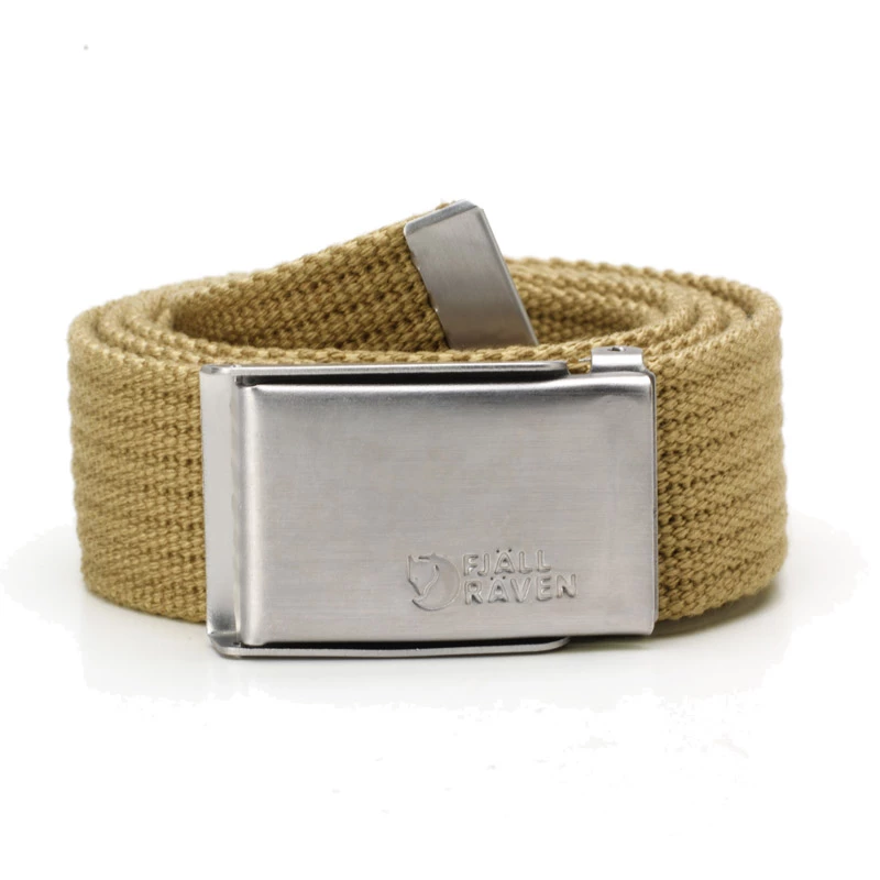 Belte i lerret. Justerbar lengde og såkalt “”militærspenne”” i metall.