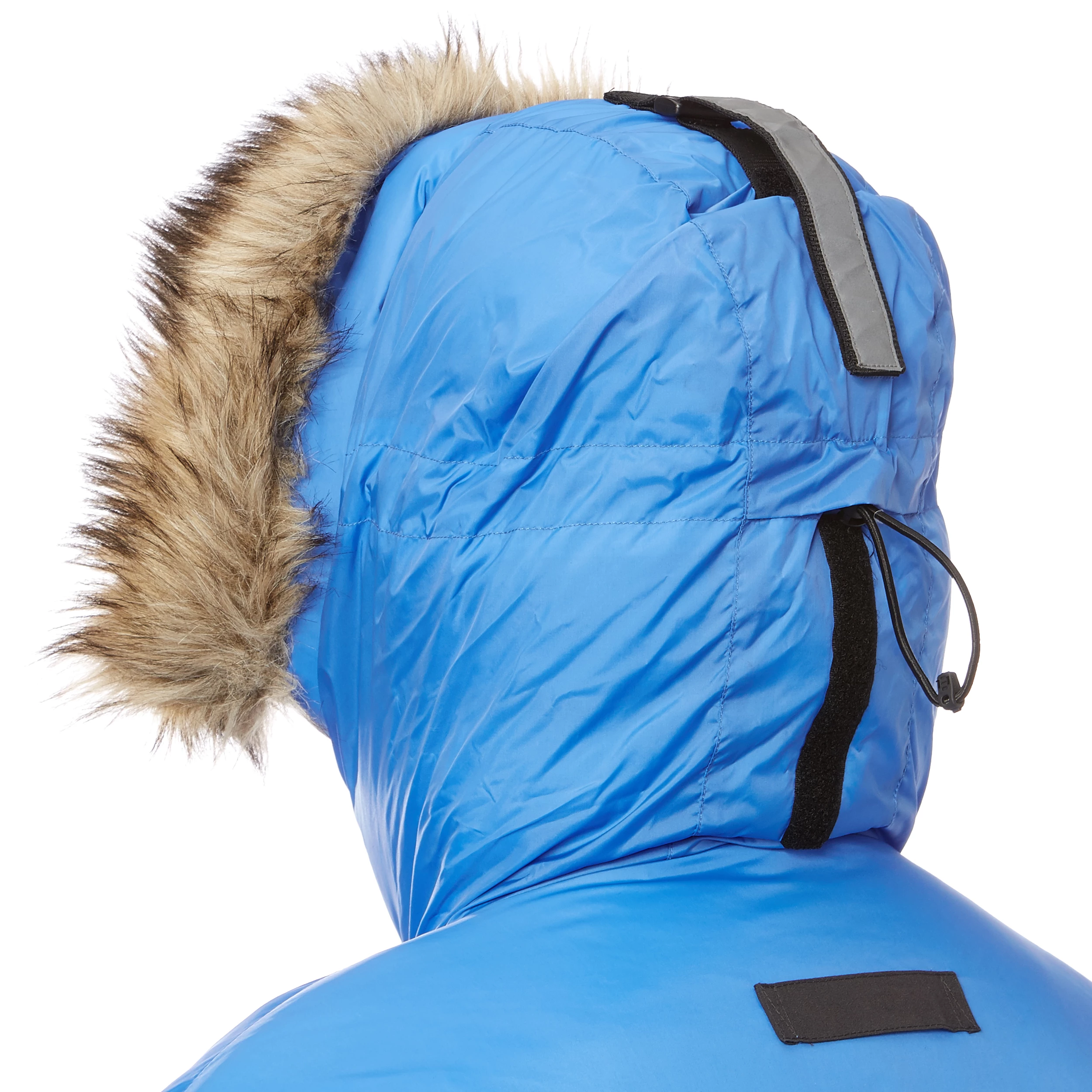 Materialet er fleksibel, slitesterk polyamid polstret med dun av høy kvalitet. Den faste hetten er justerbar og har avtakbar syntetisk pels som beskytter mot snøstorm. Rexflektorbånd på hetten og bak på ryggen for ekstra synlighet i mørke vintermånedene.