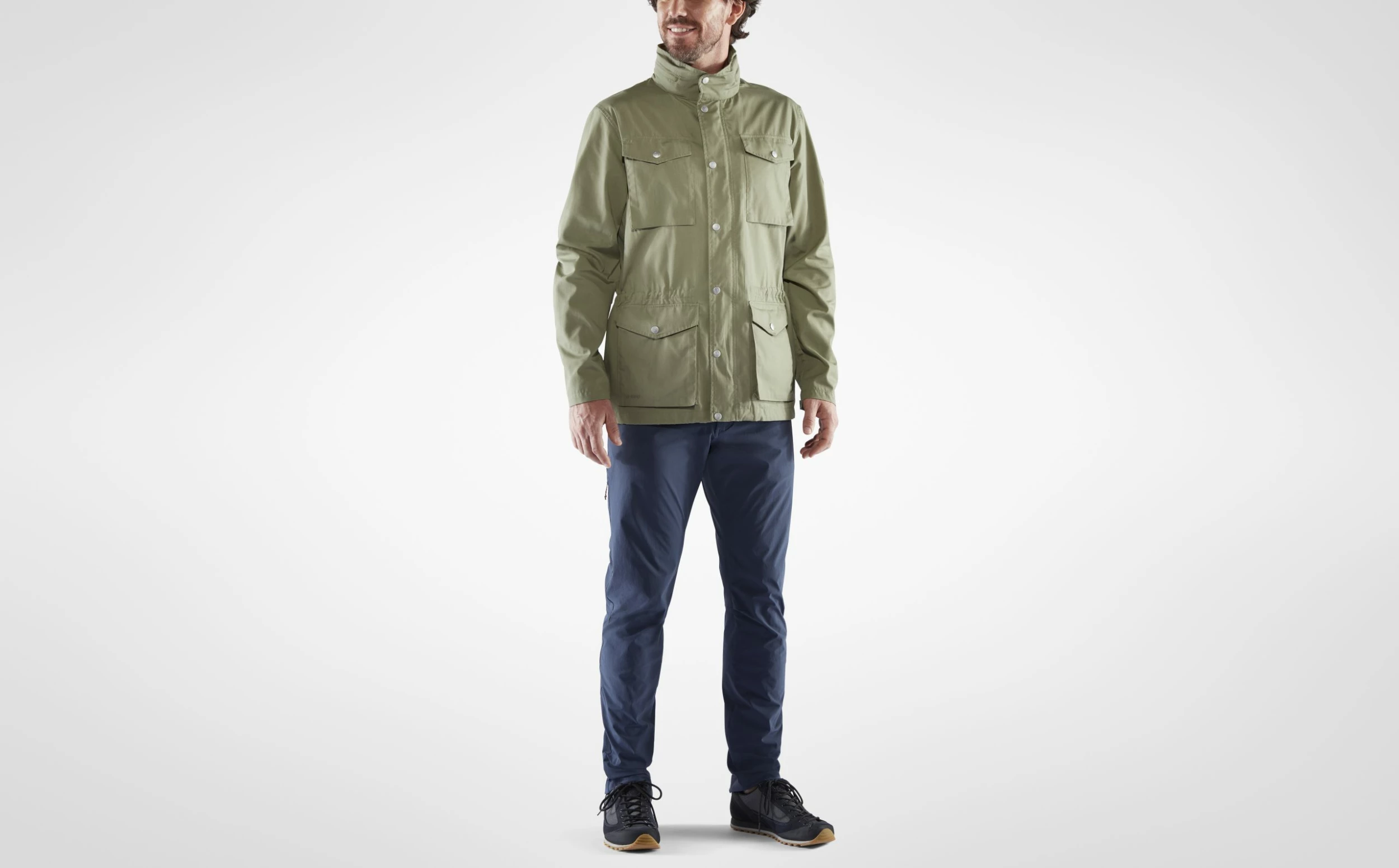 Jakken er en tynnere versjon av Fjällrävens klassiske Räven Jacket som ble designet allerede på 70-tallet. Denne versjonen er tilpasset friluftsliv og hverdag i varmere klima – like velegnet for reisen som for myke sommerkvelder rundt hushjørnet.