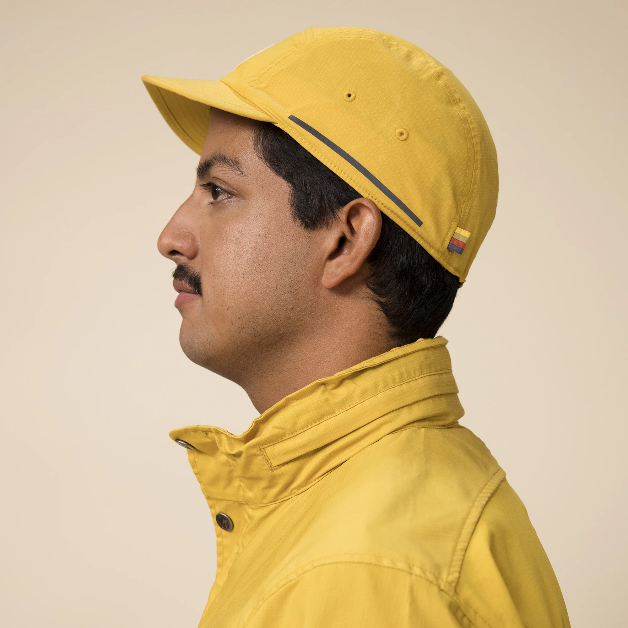 Det valgte materialet er på S/F Cap Fjällrävens G-1000 Lite Eco Stretch. Det er behagelig lett og tynt, men takket være diskret Ripstop-Webart er det likevel motstandsdyktig. På grunn av materialets lette, mekaniske stretch sitter S/F-hetten veldig komfortabelt og tilpasser seg hodeformen din. I tillegg passer den perfekt under sykkelhjelmen din. S/F-hetten er forresten også bærekraftig, fordi polyesteren som brukes er resirkulert og bomullen kommer fra kontrollert biologisk dyrking.