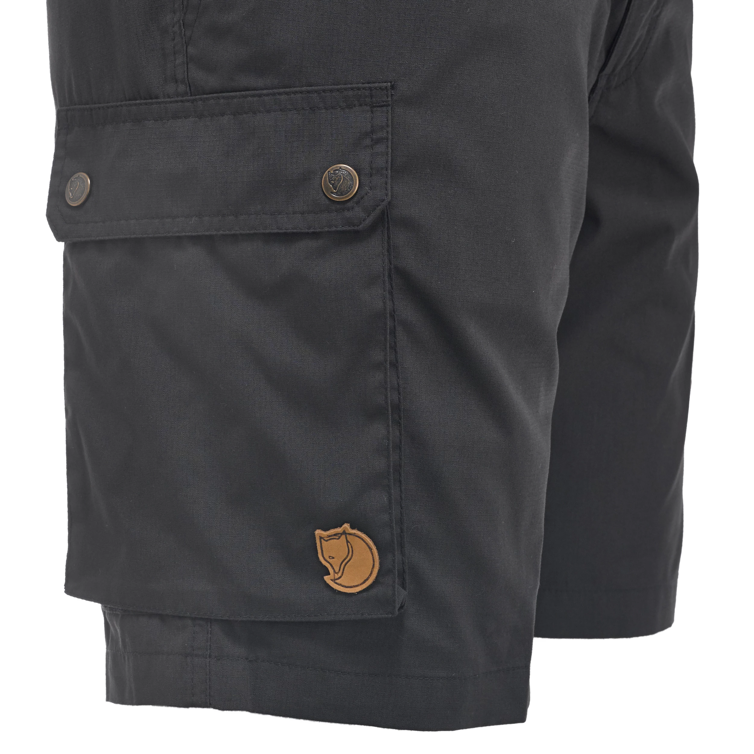 Penger, pass, mobil, nøkler, kamerabatteri – du får plass med mange verdisaker i disse shortsene fra Fjällräven. Slitesterkt, lett stoff av økologisk bomull og resirkulert polyester som ventilerer godt i de varme sommermånedene.