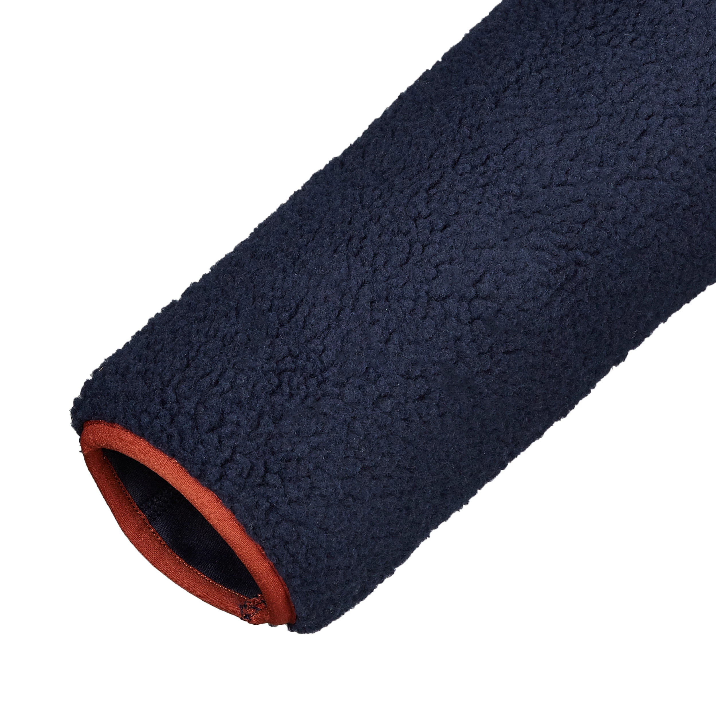 - To lag med teddyfleece på utsiden og glatt, flatstrikket innside