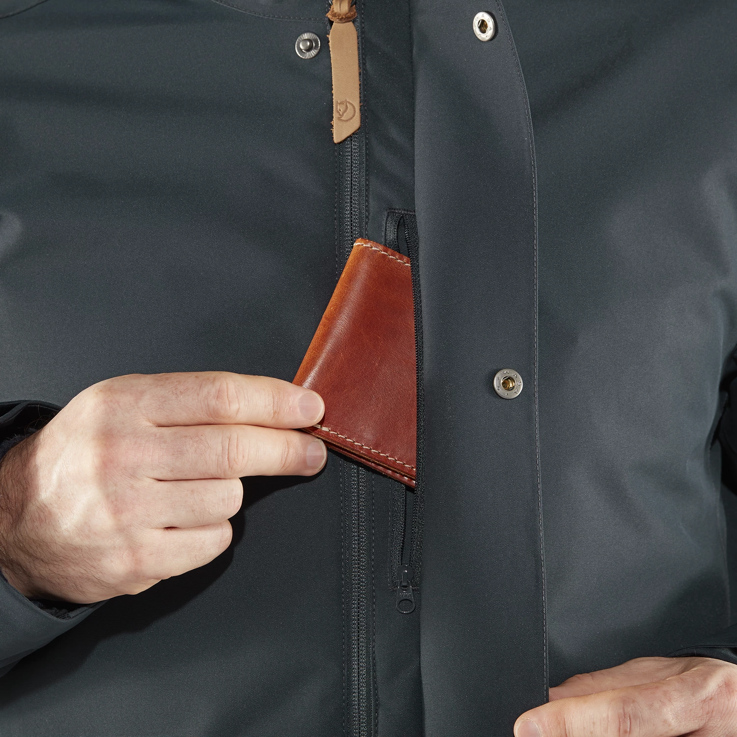 - Ytterjakke med to håndlommer med knapper og brystlomme med glidelås bak vindklaffen