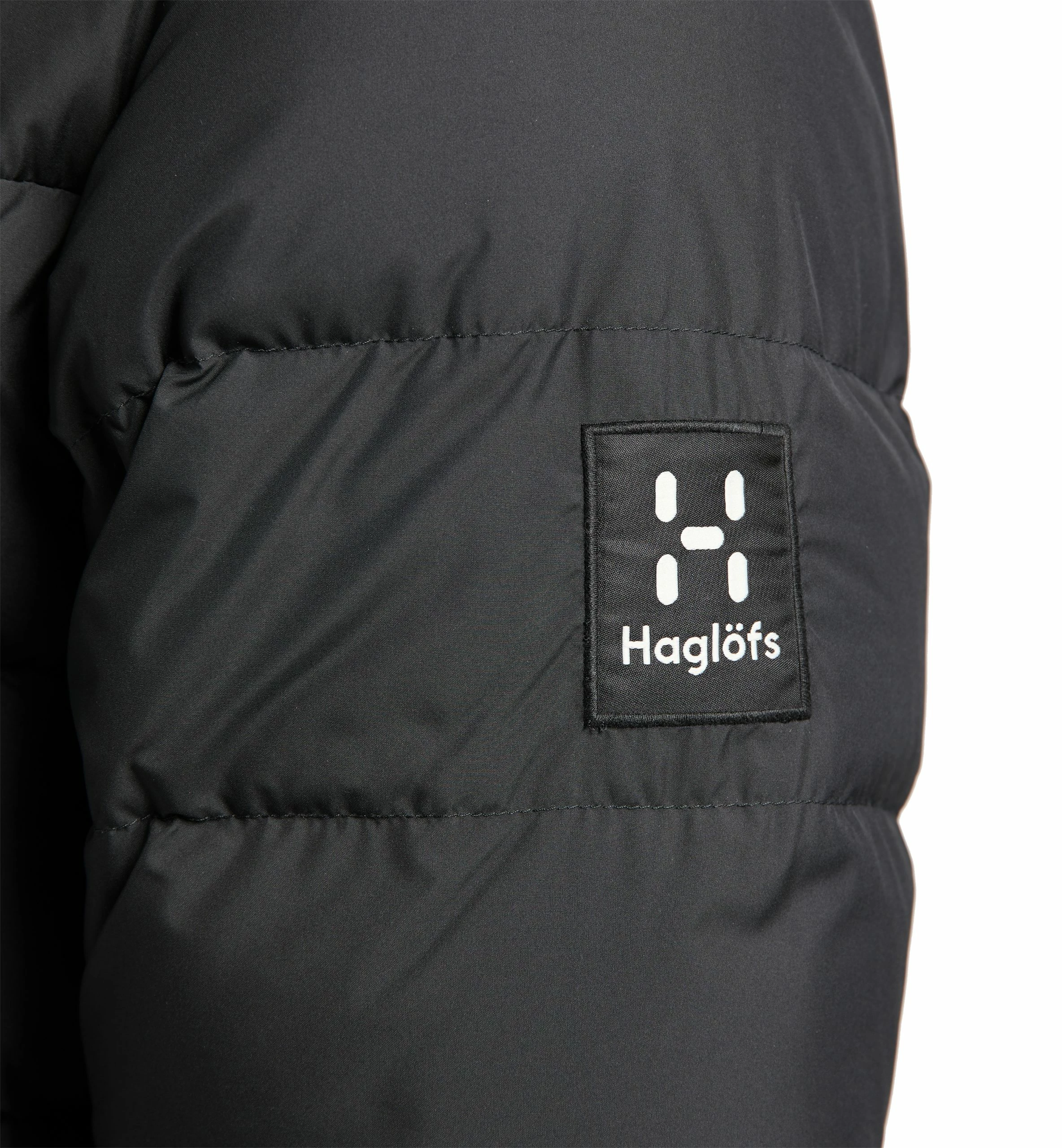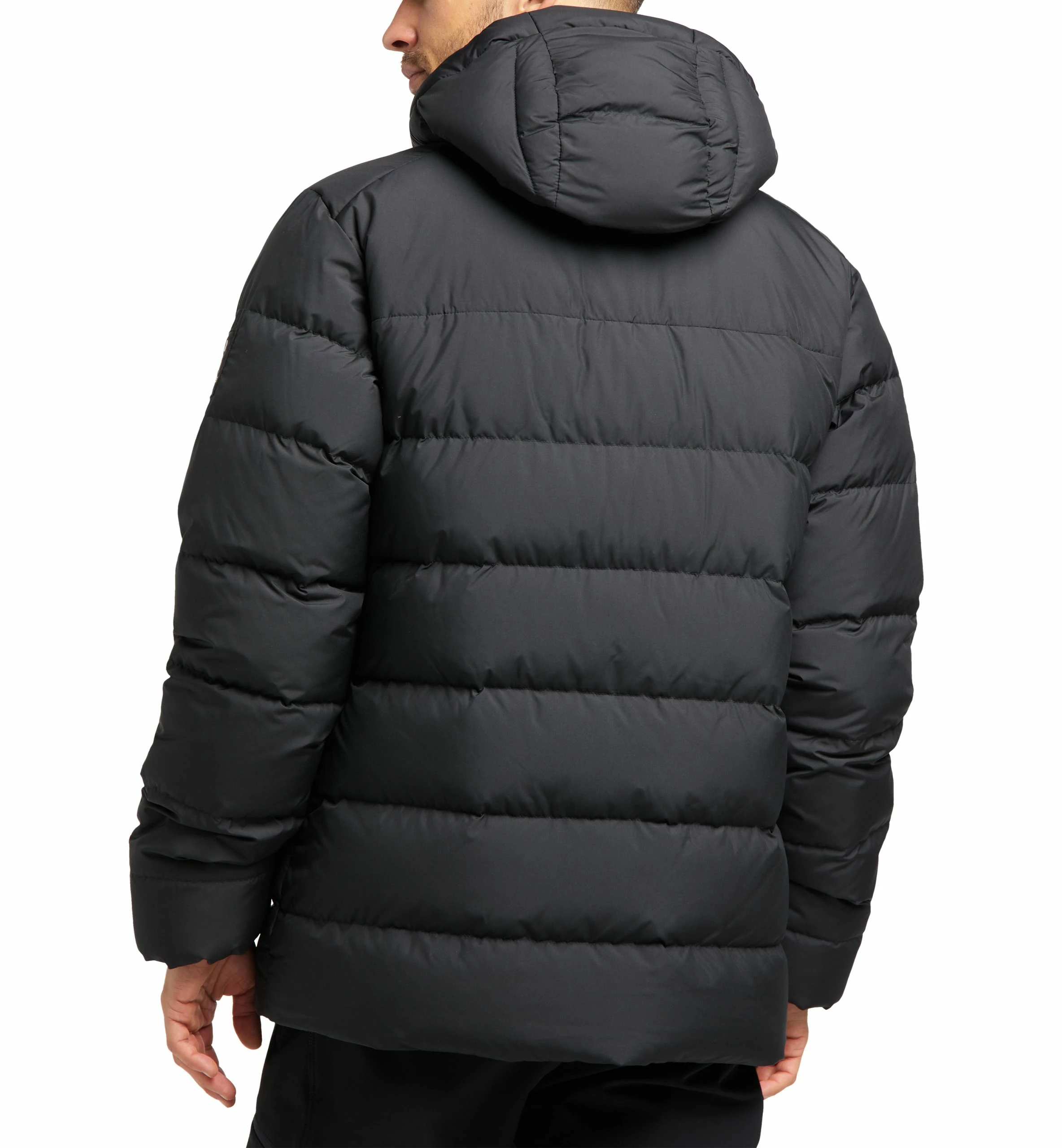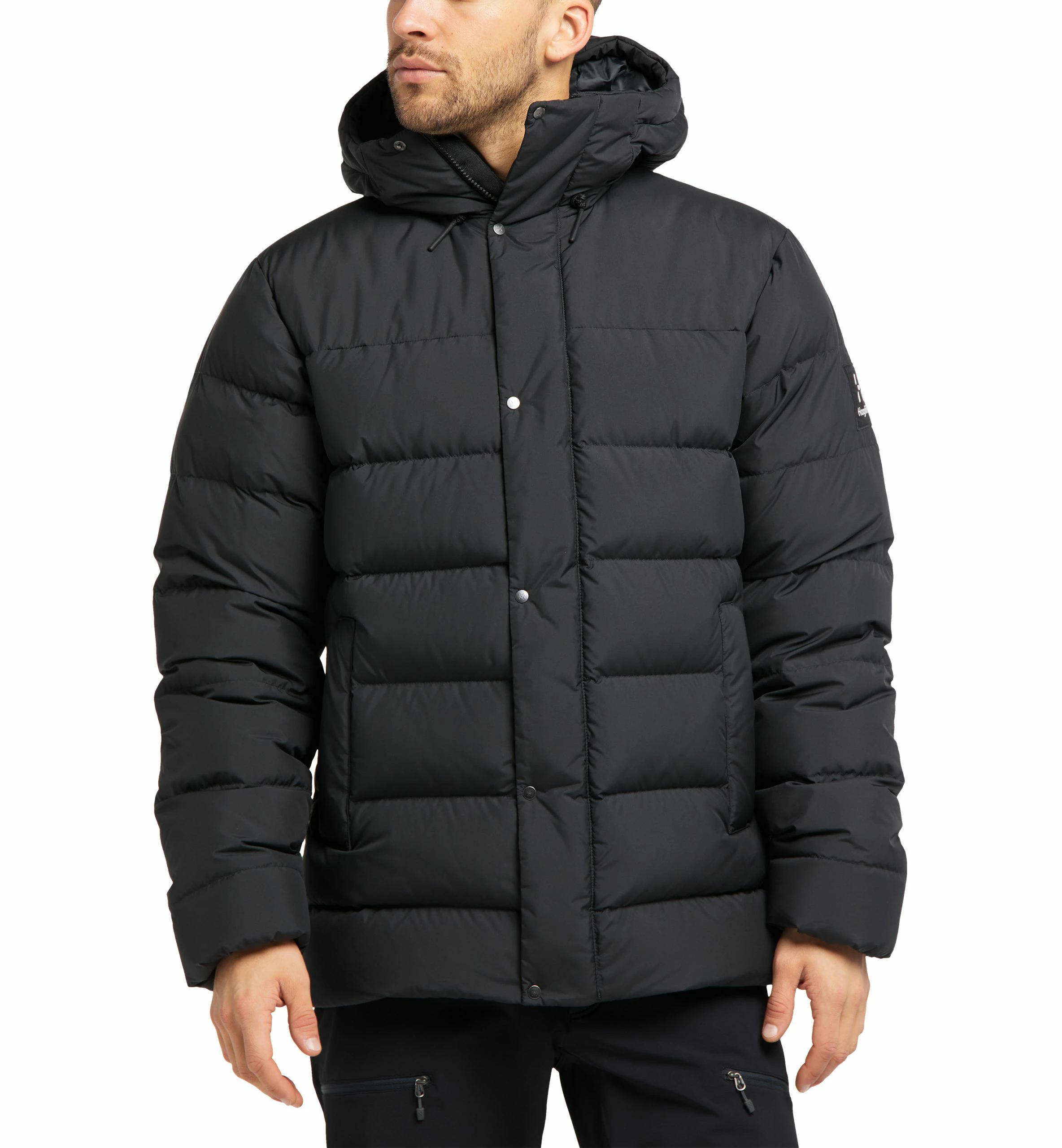 Du får en kombinasjon av tidløs design, slitestyrke og gjennomtenkte detaljer. Ingen materialvalg er overlatt til tilfeldighetene. Ytterstoffet er laget av resirkulert polyester, behandlet med fluorkarbonfri impregnering og jakken er fylt med sporbar dun. Ekstra syntetisk fyll i skuldre og i vindklaff for ytterligere værbeskyttelse.