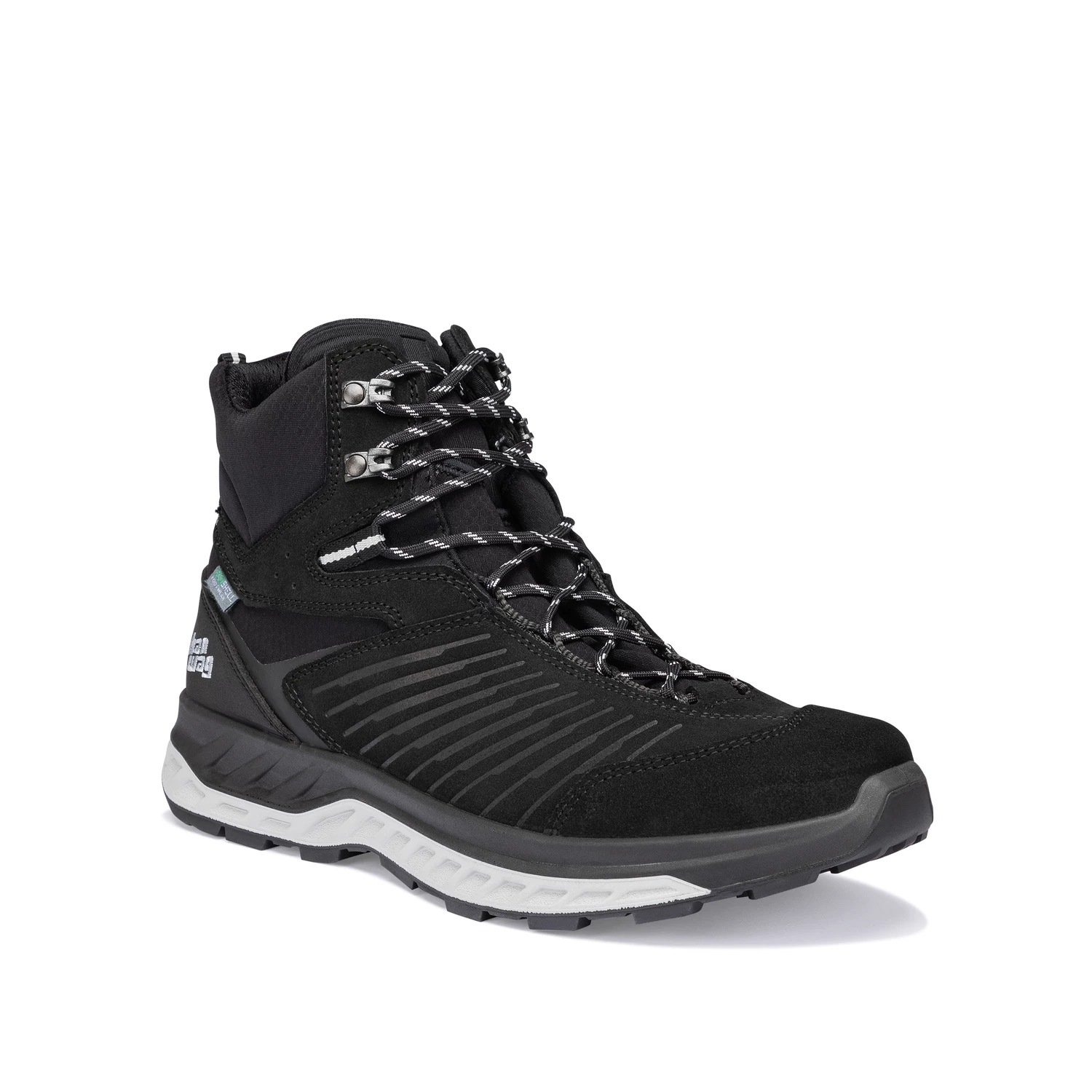 Vanntett, fluorkarbonfri membran og slitesterkt skinn sammen med resirkulert polyamid på overdelen. Polstringen på tungen er plassert i små sekskantede former for å gi høyest mulig ventilasjon uten at det går på bekostning av komforten.