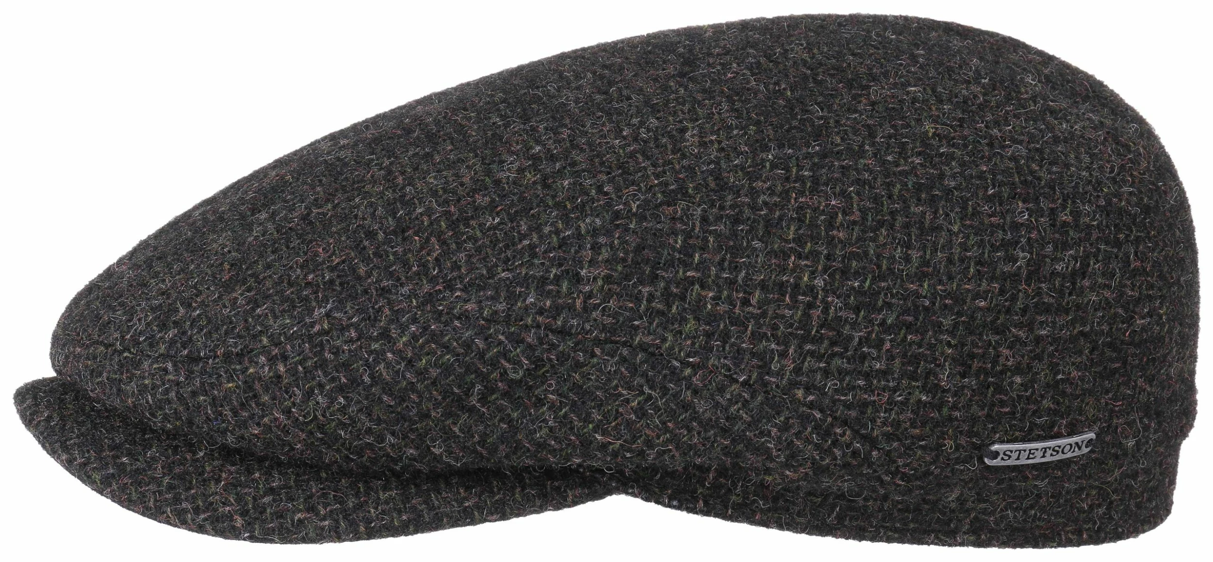 Ytterstoff av ull spinnet til melert garn som igjen spinnes til såkalt British Wool, noen ganger også kalt Panama weave. Skjermen av plast holder capsen formen uansett vær.